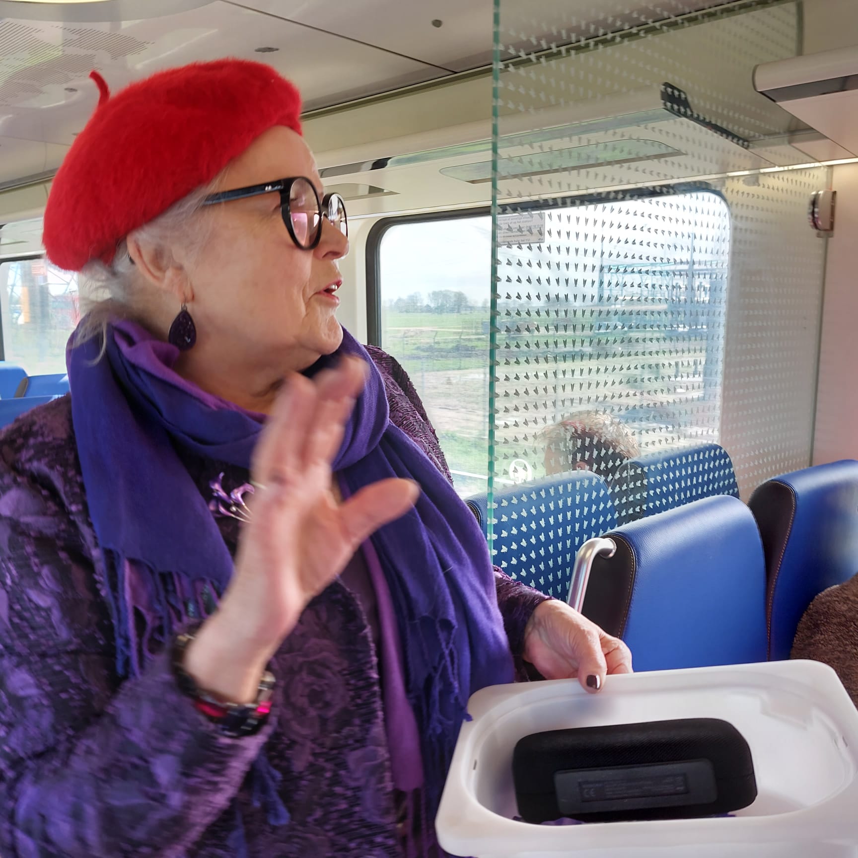 Al vroeg op weg met de trein naar Heerenveen. Barones Elisabeth heeft voor de tickets gezorgd.