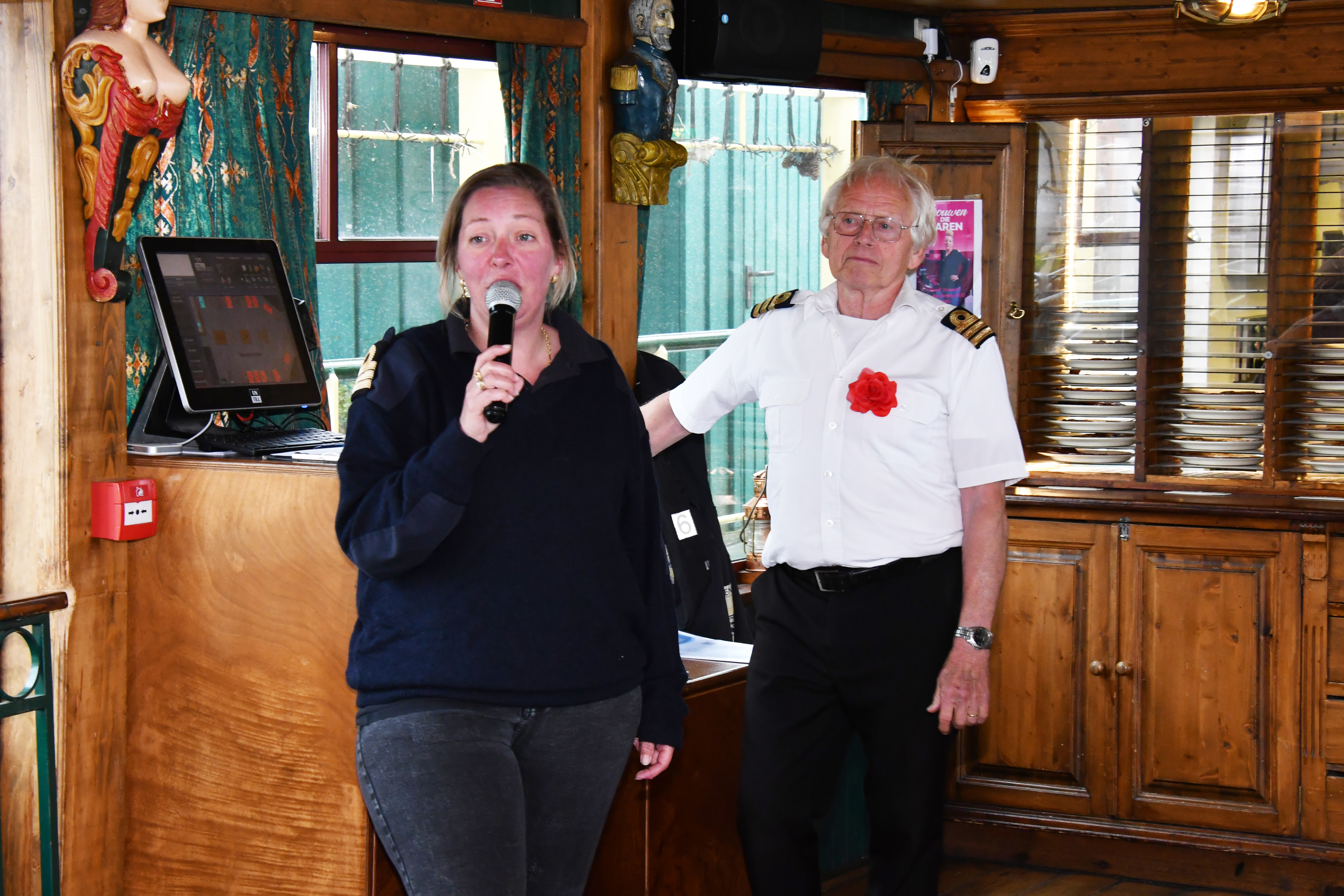 Een warm welkom van Kapitein Jos Geutjes en, bekend van “Vrouwen die Varen” Judith Oosting